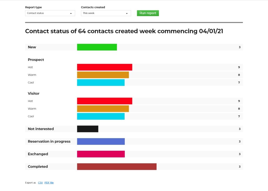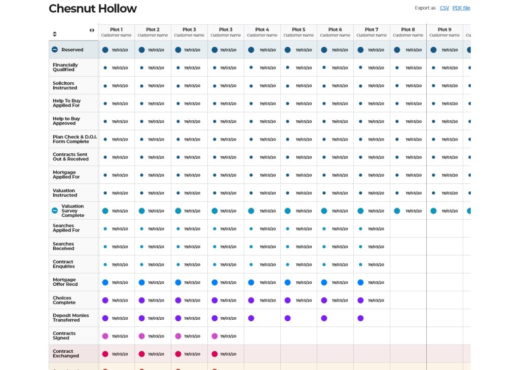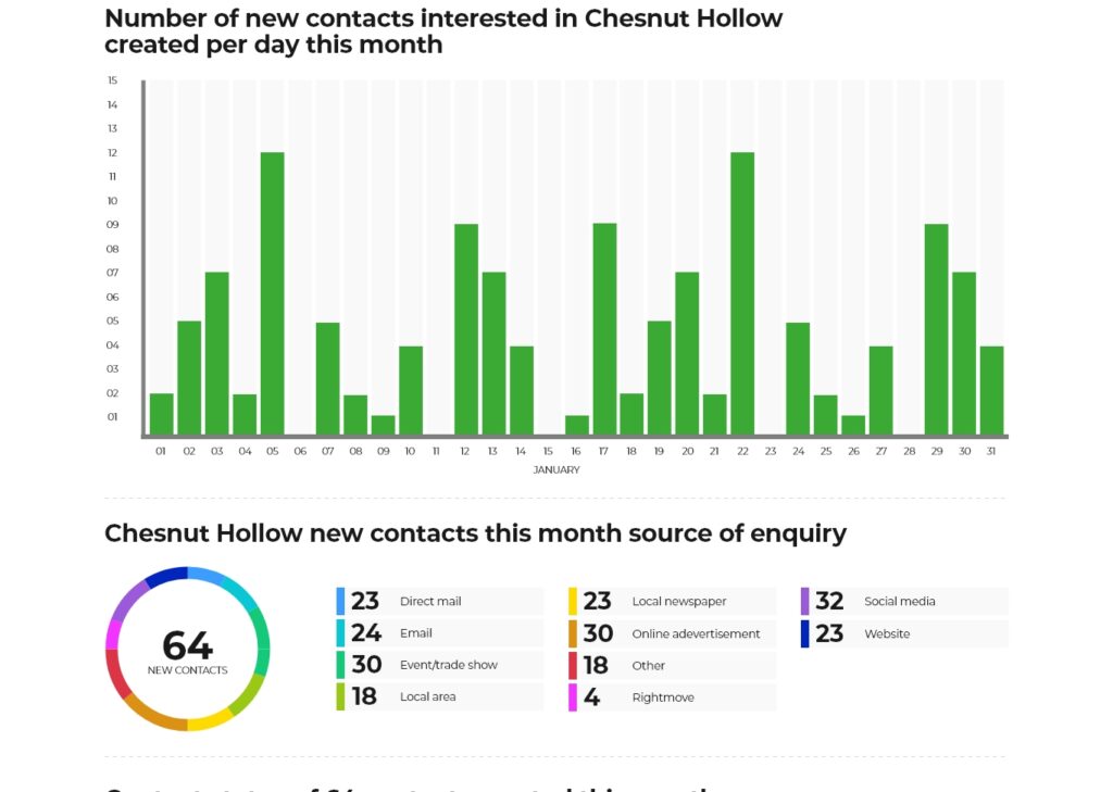 View and analyse real-time data from all modules across the Housebuilder Pro system. Including buyer positions, property interest, sales statuses, sales forecasting, sources of enquiries, snag types, contact statuses, resolution times, build statuses and new contact creation data.